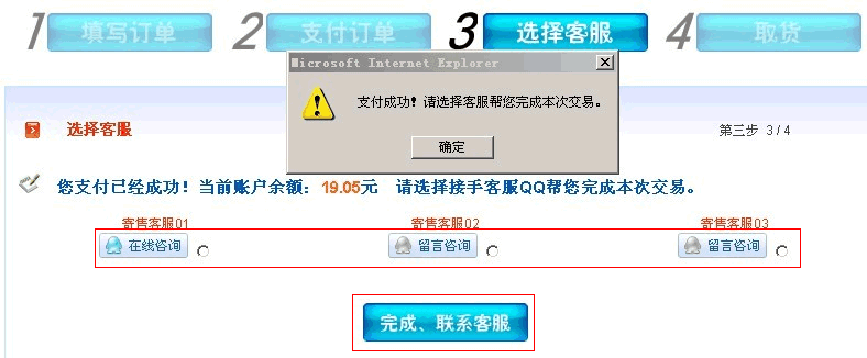 六:支付完成选择客服